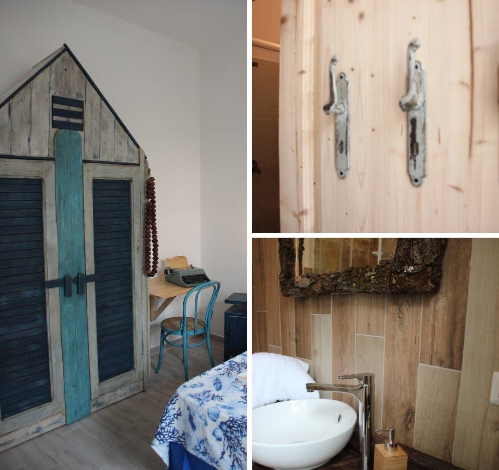Ogni camera si ispira ad un diverso elemento base della vita, Fuoco, Terra, Aria ed Acqua, e richiama in ogni singolo dettaglio la filosofia della casa, fondata sulla ricerca della sostenibilità ambientale e sulla passione per il riciclo, attività con cui ridare bellezza e nuova vita a oggetti del passato e non solo.